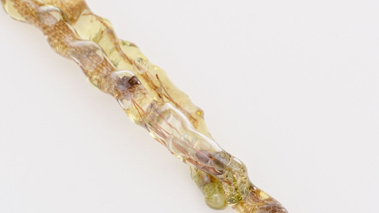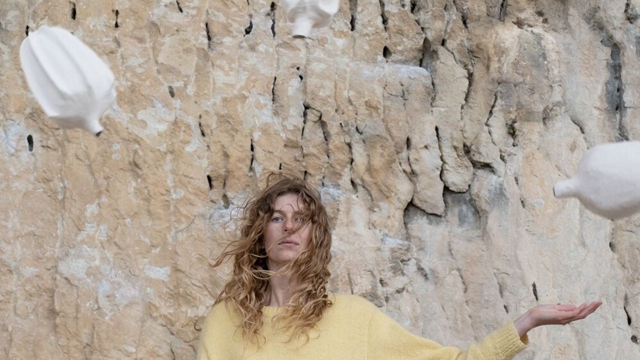 Après une année dans le sud de l'Italie* - pendant laquelle Hélène Bertin a glané des rameaux et dansé les danses traditionnelles de la région du Vésuve, matériaux à partir desquels elle a produit les sculptures danseureuses -, l'artiste a vécu pendant quelques mois dans la région de Bahia au Brésil, fin 2024. C'est là, sur le sable de l'île d'Itaparica**, que sont nées les esquisses des futures sculptures en verre de la série soigneureuses. C'est là aussi, dans les montagnes derrière Bahia, qu'elle a exploré différents contextes et rapports au temps et au corps et qu'elle a appris le tremblement, au sein de vives cultures ancestrales. De retour en Europe, elle a poursuivi ses explorations en Dordogne, au cœur d'un lieu de vie collectif autour du mouvement dansé***. Puis elle est retournée auprès des volcans, sur l'île éolienne de Filicudi, où elle a expérimenté pour la première fois l'écriture de soi. Enfin, elle est allée en résidence à Marseille**** pour produire les pièces qui composent le second ensemble de sculptures de l'exposition et renferment ce grand voyage extérieur et intérieur.