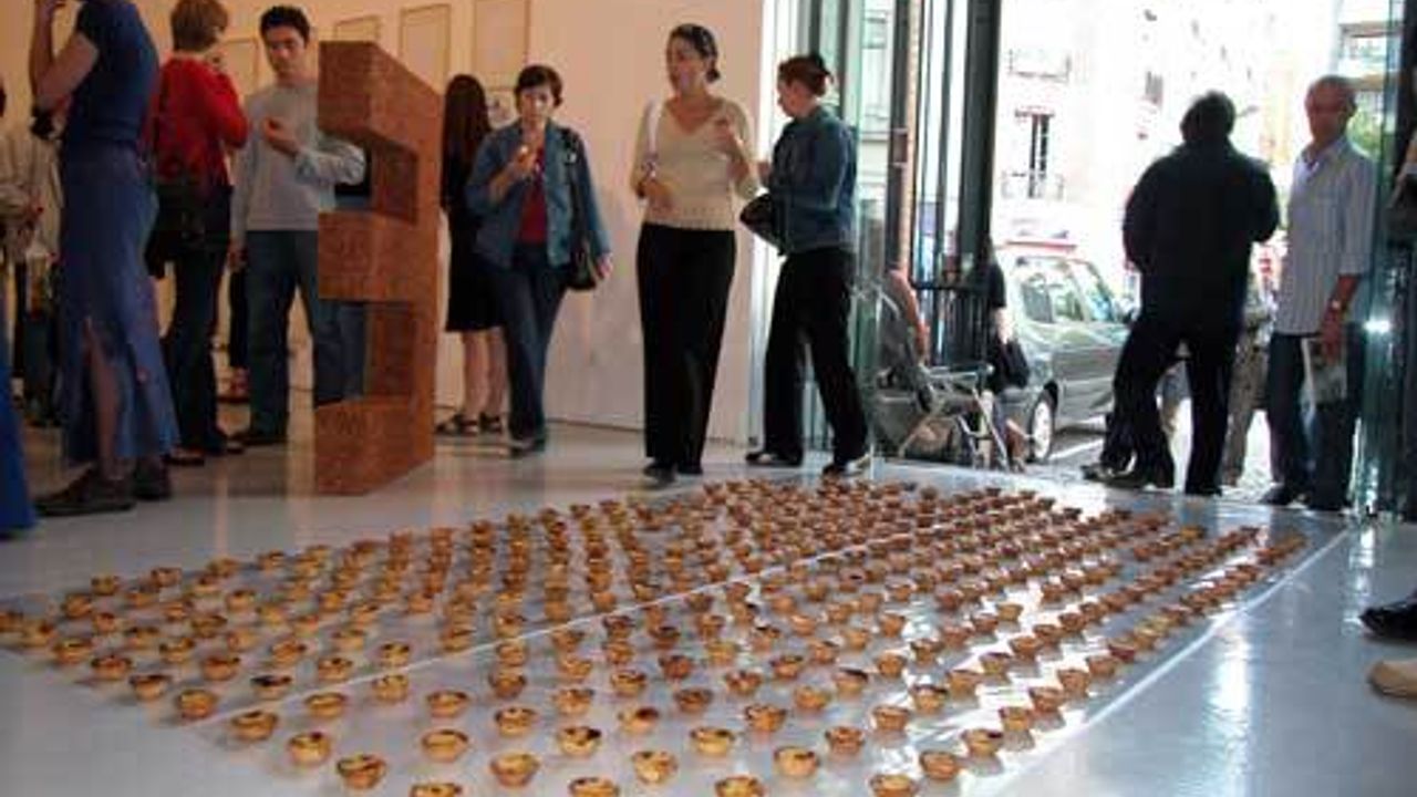 Le pasteis de nata est un gâteau typiquement portugais qui existe depuis le XIXème siècle, réalisé avec de la crème fraîche et de la pâte feuilletée. Lors du vernissage de l’exposition Art envie, Pedro Pereira en a recouvert le sol à l’entrée de la galerie sur une surface de 7 m2.