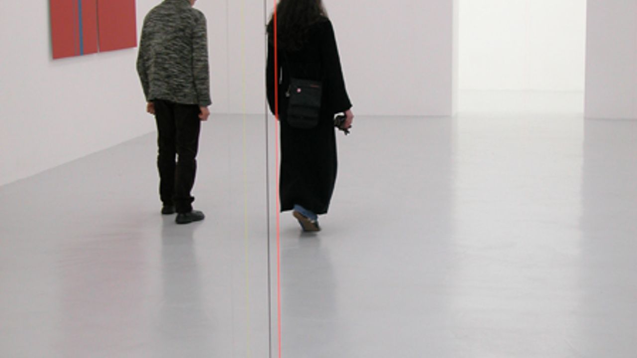 Si Yann Lestrat produit des oeuvres qui peuvent exister de manière tout à fait autonome, indépendament les unes des autres, il a néanmoins abordé les salles du centre d’art comme un unique espace de perception. Ainsi, l’ensemble des oeuvres présentées à l’occasion de l’exposition formait une vaste installation, composée par une série de quatre diptyques et par des fils de couleurs tendus du sol au plafond et baignés d’une lumière intense (peinture n°29 et peinture n°30). Tels des paysages abstraits, les diptyques sont composés de bandes verticales qui apparaissent en relief et en mouvement grâce à la technique de l’image sous réseau lenticulaire.