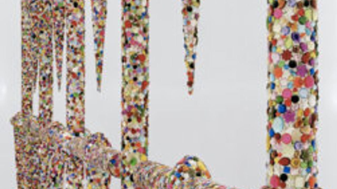 Paola Pivi produit pour La Criée centre d’art contemporain une surprenante installation constituée d’une vaste structure en acier qui se déploie du sol au plafond de la grande salle d’exposition. L’ensemble compose une structure en grille entièrement recouverte de milliers de cristaux multicolores ayant l’aspect de pierres précieuses. Cette structure en grille est ponctuée de modules abstraits en suspension qui peuvent faire référence à des gouttes d’eau. L’œuvre s’intitule If you like, thank you. If you don’t like it, I’m sorry. Enjoy anyway (Si vous aimez, merci. Si vous n’aimez pas, je suis désolée. Quoiqu’il en soit, prenez plaisir).