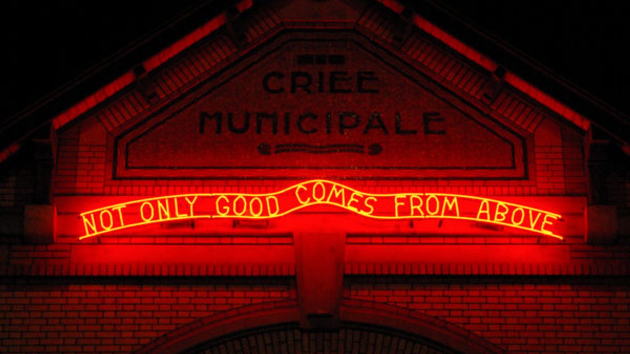 Not only good comes from above (« il n’y a pas que le bien qui vient de là-haut »), est une installation en néon rouge accrochée sur la façade au-dessus de l’entrée principale du centyre d’art.