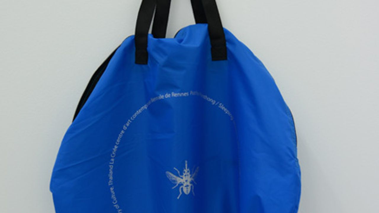 Par ailleurs, Pratchaya Phinthong a confié la production de 500 pièges à une entreprise thaïlandaise spécialisée dans la confection de tentes de méditation pour les monastères. En parallèle de l’exposition, les 500 tentes bleues sont déployées en Zambie, Éthiopie et Tanzanie, afin de tester en situation leur efficacité. Ces pièces sont contenues dans des petits sacs portant le nom de La Criée centre d’art contemporain et de la biennale de Rennes, ainsi que le titre de l’exposition, sleeping sickness. En retour, Pratchaya Phinthong a invité les scientifiques et biologistes à lui transmettre des photographies des pièges en contexte avec les moyens dont ils disposent. Parmi les premiers documents reçus, un rapport envoyé par le département de biologie de Lusaka en Zambie détaille l’efficacité de ce nouveau piège – T1 correspond au prototype officiel et agréé, le T2 au prototype exposé à la Criée, rebaptisé par les chercheurs Phinthong trap et T3 au piège conçu par Pratchaya Phinthong et amélioré par les chercheurs. D’autres documents ou photographies seront ajoutés progressivement dans l’espace de La Criée, témoignant de l’évolution de l’œuvre dans le temps et l’espace.