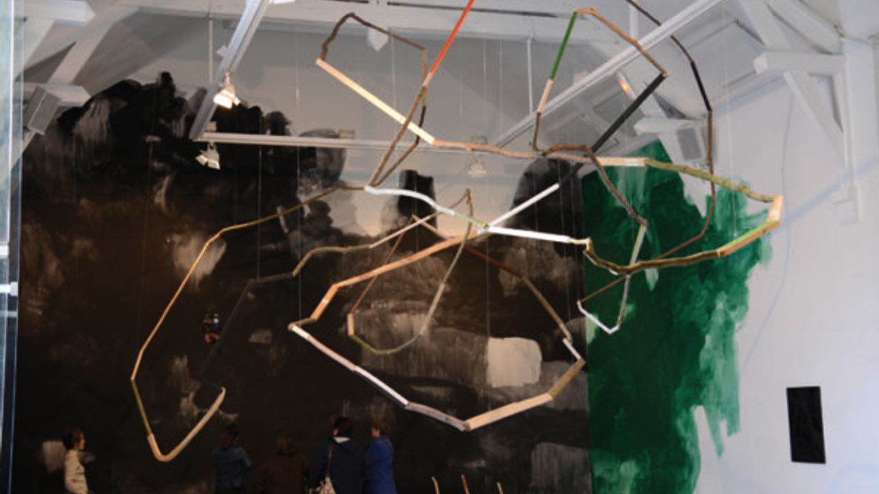 Les projections de couleurs verte et noire évoquent l’univers à la fois sombre et verdoyant de la forêt. Les peintures murales soulignent également l’architecture de La Criée, détournant avec ironie la tradition de la fresque et de l’abstraction.