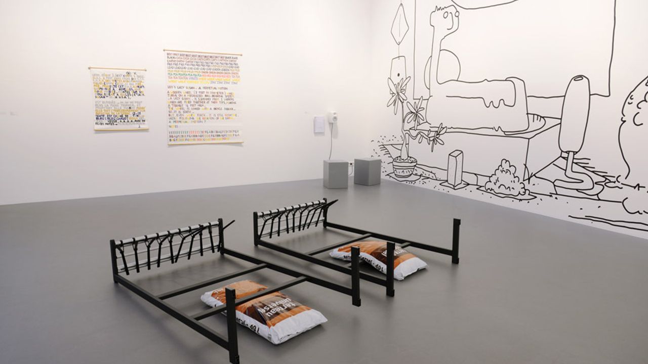 Droits réservés : gerlach en koop, Pillow Objects, vue de l'exposition Alors que j'écoutais moi aussi David, Eleanor, Mariana, Delia, Genk, Jean, Mark, Pierre, Shima, Simon, Zin et Virginie, La Criée centre d'art contemporain, Rennes, 2017 © Benoît Mauras
