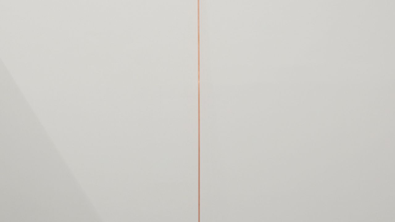 En attendant la foudre #2 montre l’intérêt de l’artiste pour l’origine de la matière et le dialogue entre nature et culture. L’œuvre se compose d’un fossile de tortue sur lequel est posée en équilibre une barre de cuivre. La carapace de la tortue a été retrouvée intacte, transformée en pierre au terme d’un processus de plus de 25 millions d’années. Si la foudre venait à tomber sur la barre de cuivre, elle détruirait en un fragmentent de secondes cette trouvaille géologique. Un jeu d’équilibre fragile s’opère, entre ciel et terre, entre hier et aujourd’hui, faisant naître une sorte de vertige et de compression de l’espace-temps.