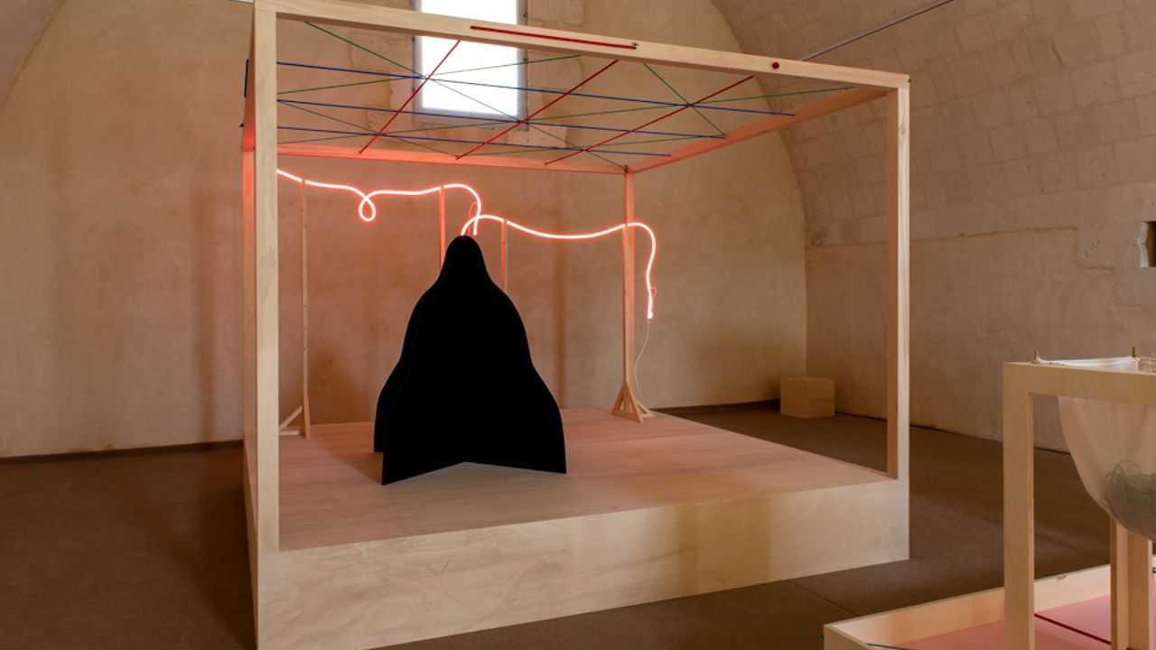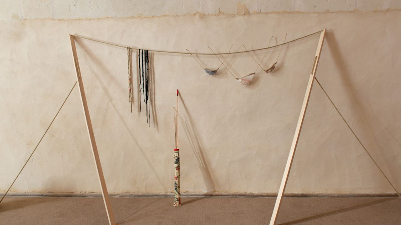 Plier-déplier, couvrir-révéler, creuser-remplir, impliquer-expliquer, coudre-défaire, unir-détacher sont autant de gestes qui se font écho dans le répertoire visuel de l’artiste. L’installation conçue pour la poudrière condense ces gestes dans un ensemble de formes hétéroclites qui composent un système à part entière où chaque œuvre est éclairée par le lien qu’elle entretien avec les autres qui l’entourent.