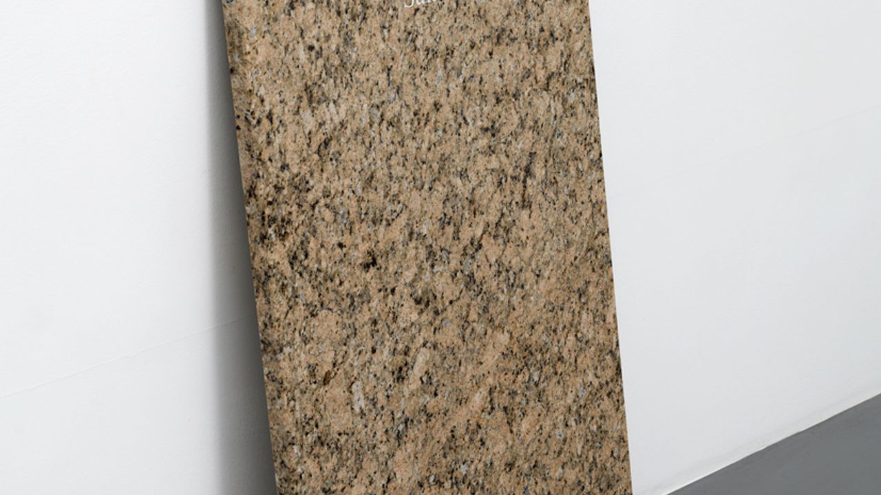 deux dalles de granit, sculpteur, deux visiteurs (Saira et Maciej), exposition