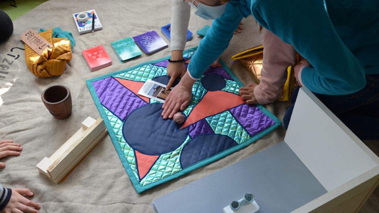 Un jeu numérique ((à jouer en ligne depuis ce lien)) : découvrez un espace d’exposition vierge, répondez aux questions proposées et vous pourrez gagner des reproductions d’œuvres exposées à La Criée. À vous ensuite de les disposer comme bon vous semble dans l’espace donné. Vous pouvez les sélectionner, jouer sur les correspondances, les formes, les couleurs, leur taille et même choisir la couleur des murs. Quand vous avez fini, sauvegardez votre exposition en photo et donnez-lui un titre. Celle-ci rejoindra la galerie d’images LiZellBa.